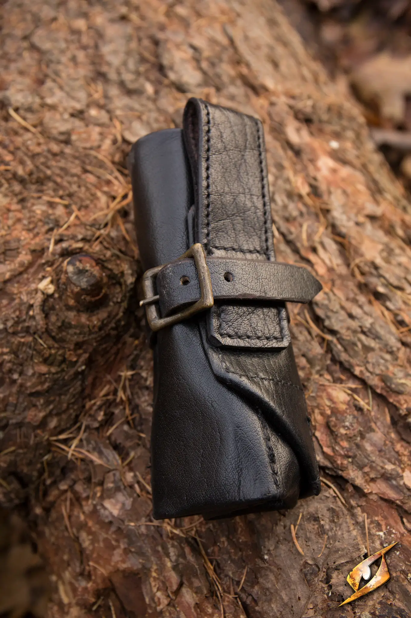 Keep all your Thieves Tools safe by storing them in the included holder made from soft, split-leather. Secure the holder closed using its top-grain leather strap, and keep it handy by attaching it to your belt using its hanger. Whether you are a rogue looking to make an easy coin, or an adventurer who wants to be ready for the most dangerous dungeons, the Thieves Tool set is a great prop to have!