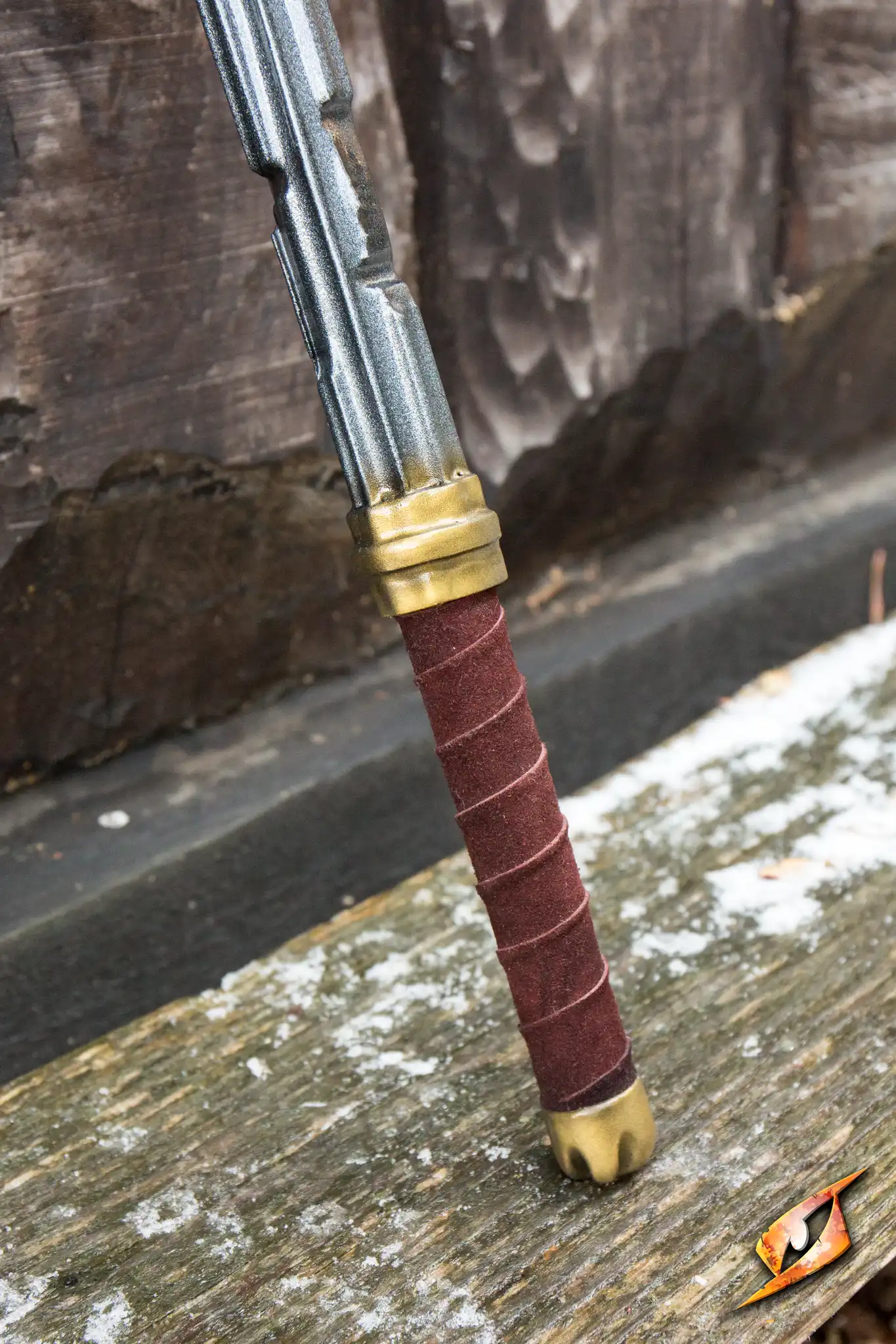 Epic Armoury’s Guardian is a high-fantasy latex war hammer with rich, sculpted and hand-painted detailing. The Guardian’s head is 9 cm wide, with a 15 x 15 cm face designed to deliver a fatal blow to your enemies. An 8 cm claw-like spike serves as the peen of the hammer, opposite the face. Sculpted and hand-painted, the head of this hammer appears fitted to the haft through a jeweled metal bar. This detailed metal attaches to the steel-colored haft and the 12 cm handle wrapped in split-leather for a comfortable and secure grip.